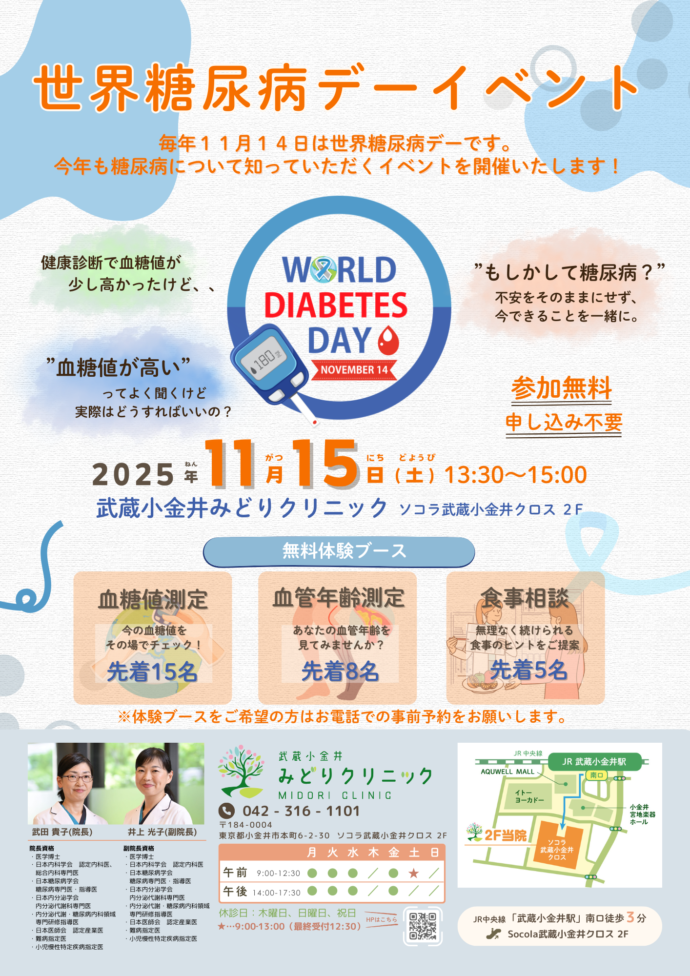 お知らせ|小金井市の武蔵小金井みどりクリニック|内科・糖尿病内科・甲状腺疾患・生活習慣病・高血圧症・脂質異常症・内分泌疾患・予防接種